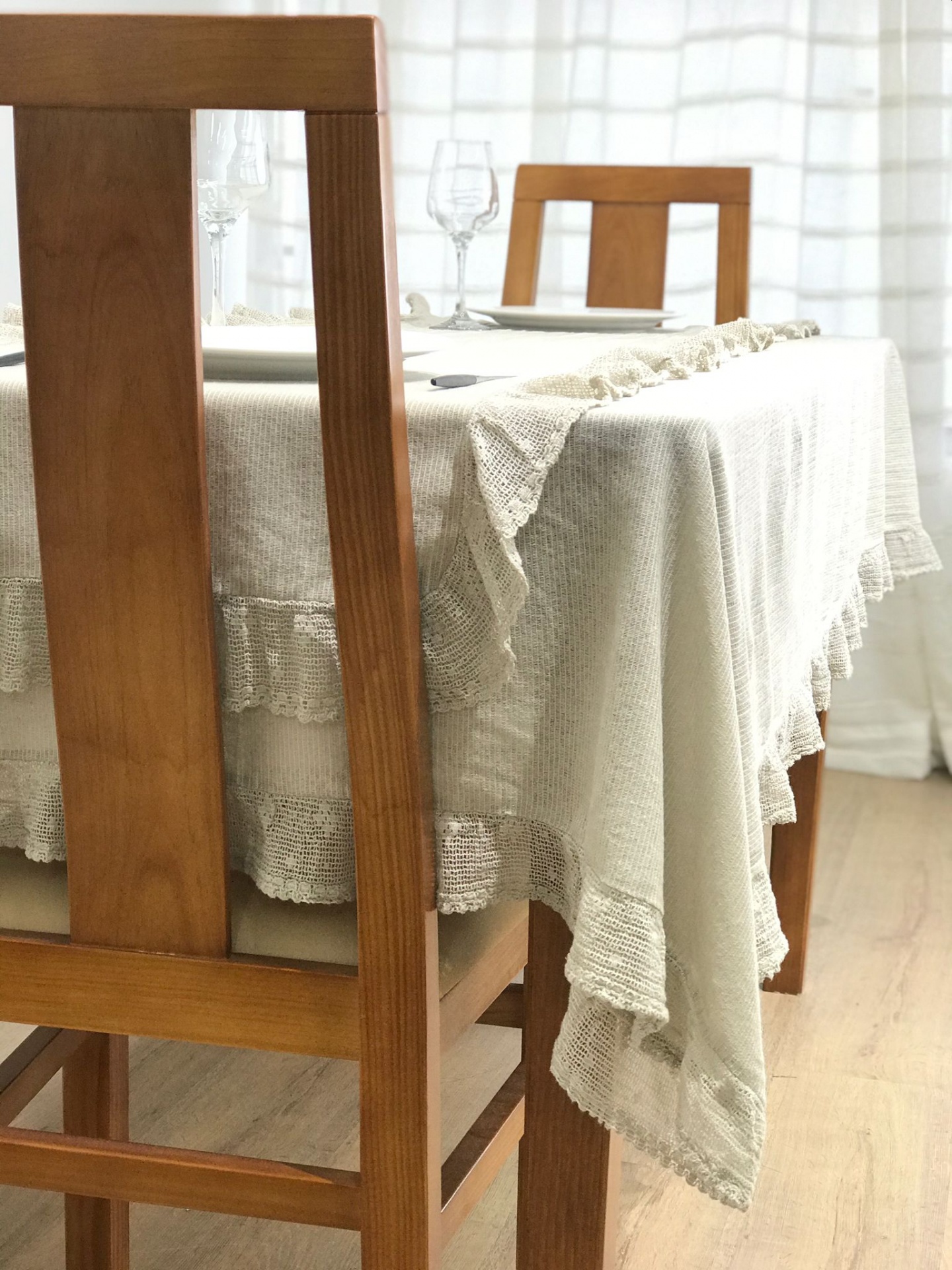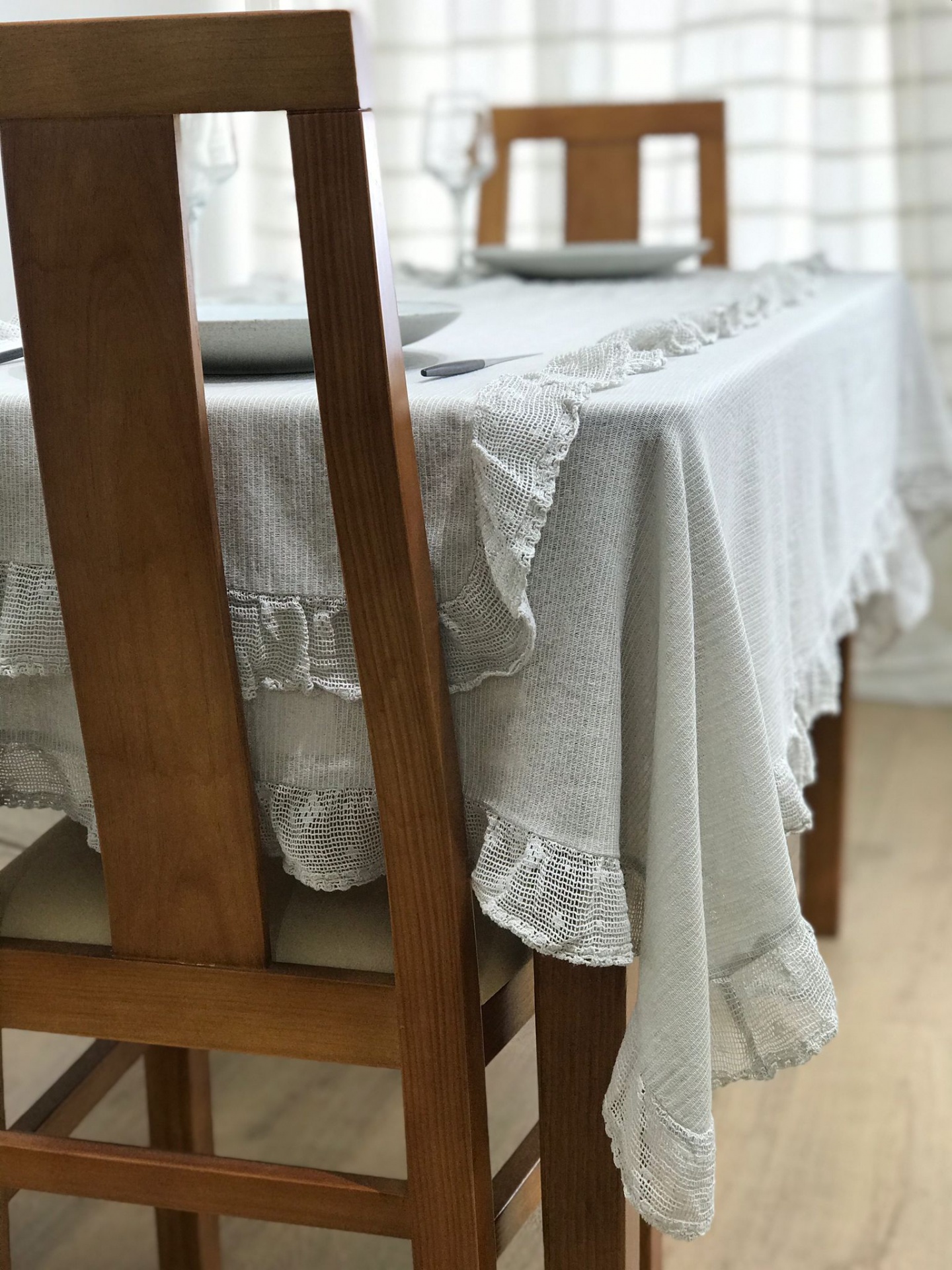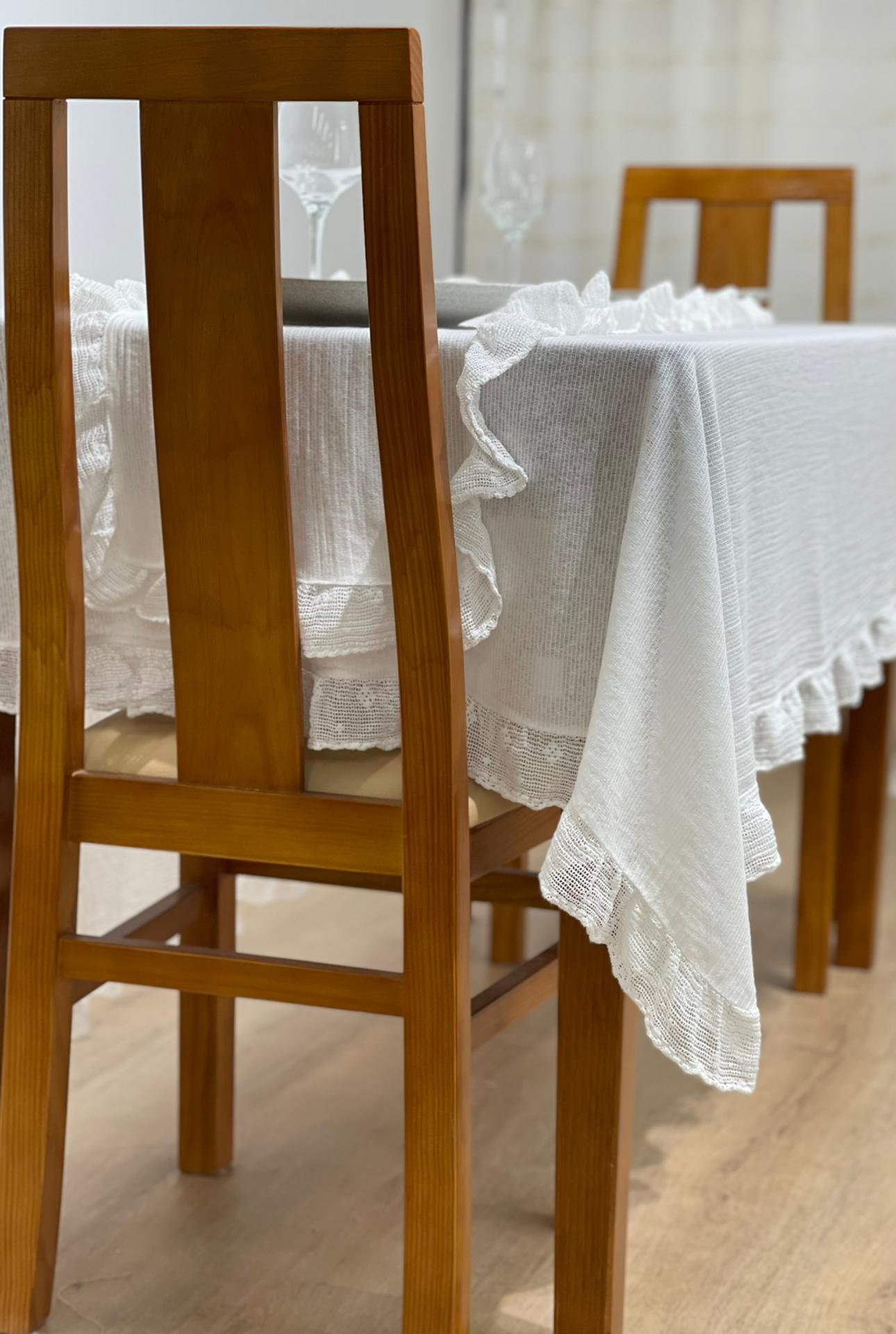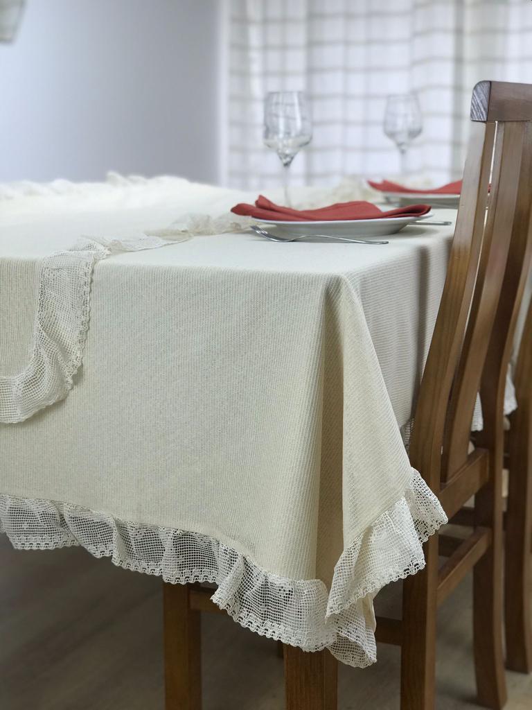 Toalha de mesa Folho com Renda, modelo elegante disponivel em várias cores. Ofereça um toque especial à sua mesa de jantar.