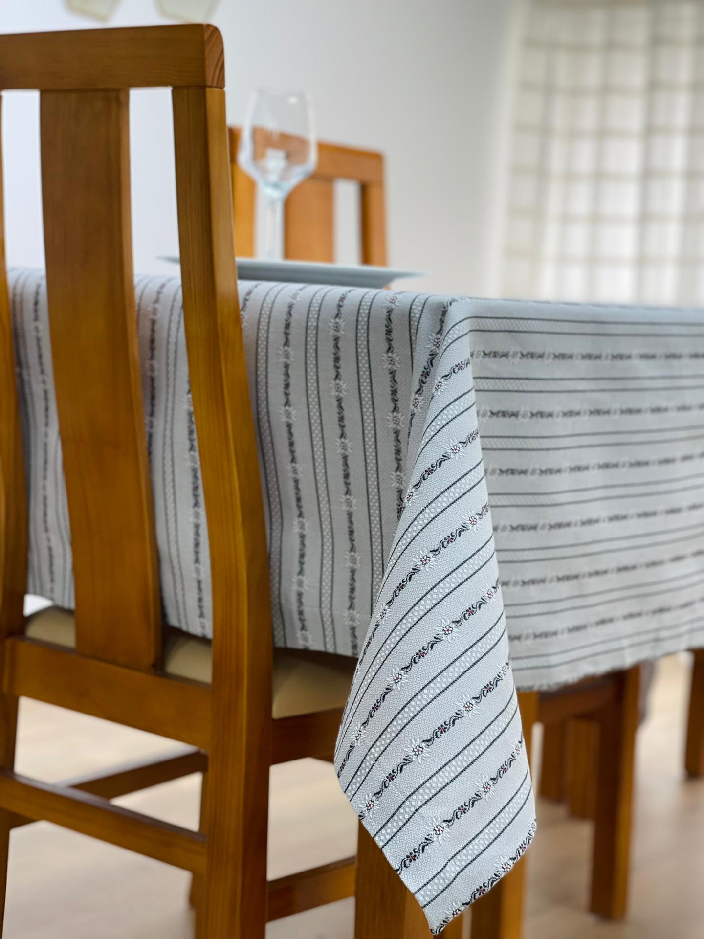 Toalha de Mesa Algodão Cinza Flor