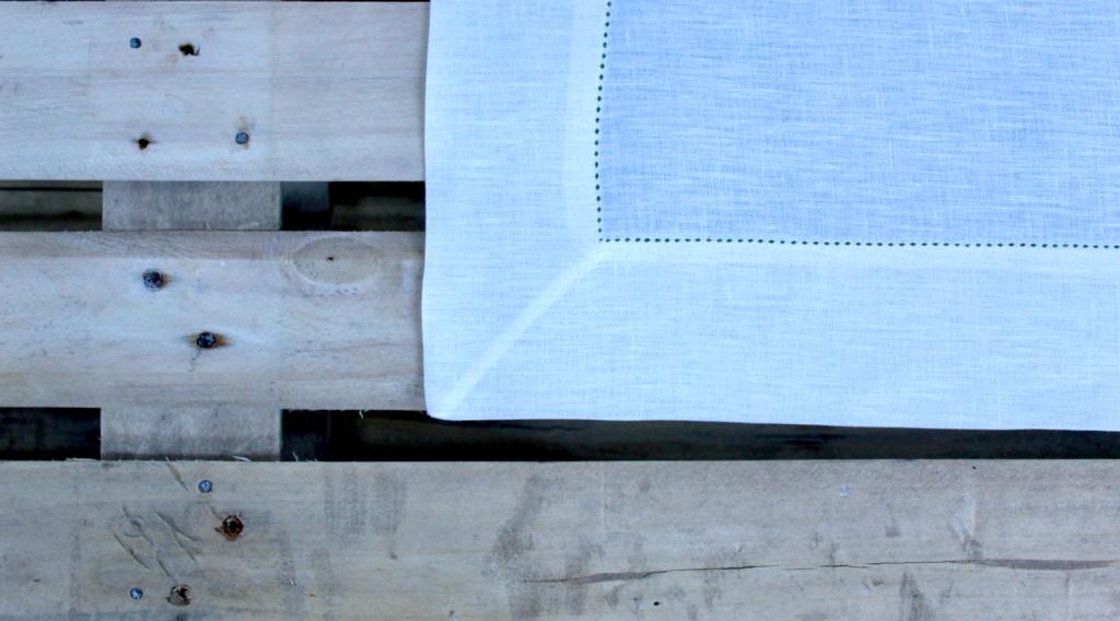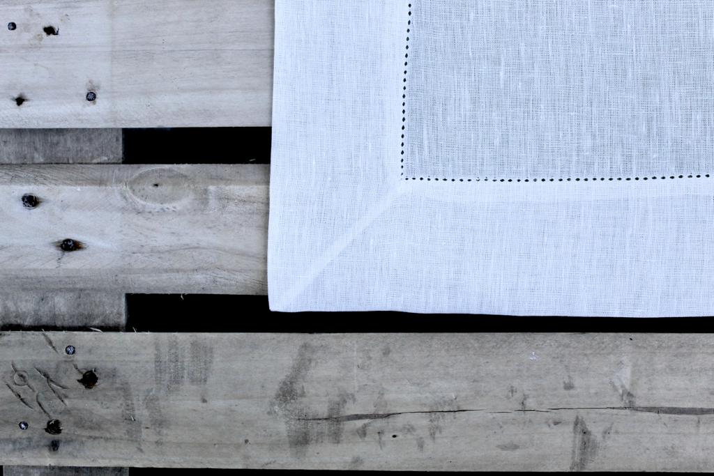 Toalha de mesa em linho e ponto aberto.